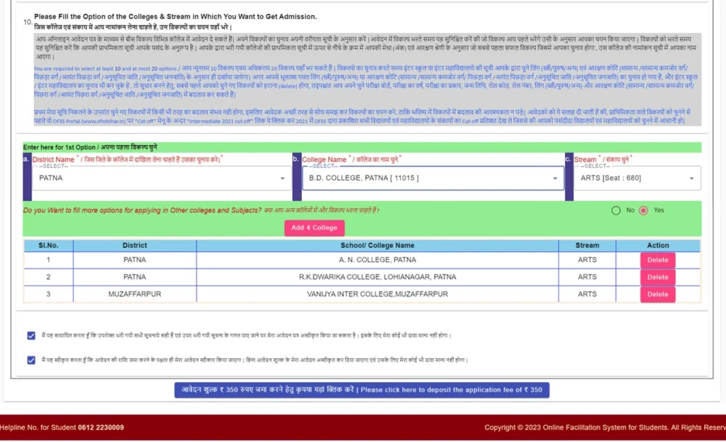 - Step 5 – Once you’ve completed all the required details, select your preferred schools/colleges for admission. You must choose at least 5 options and can select up to 20 options.
